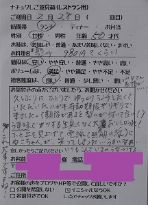 山菜のおいしさ、野菜の風味に感激しました。