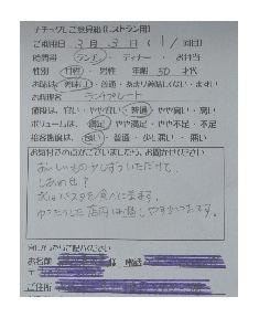 山梨県甲府市のHO様【山梨県甲府市グルメレストランナチュラルグレースのランチ&ディナー】