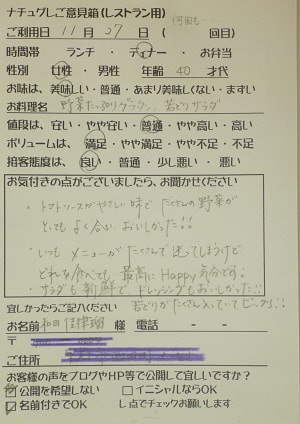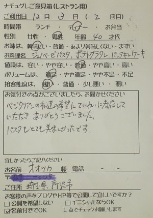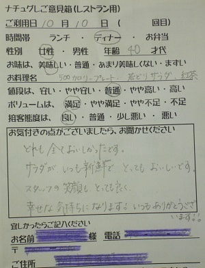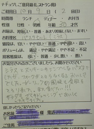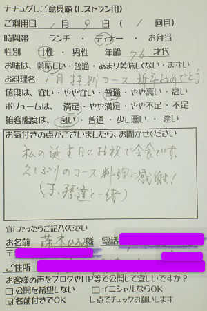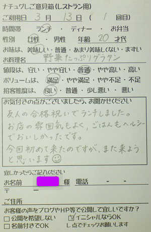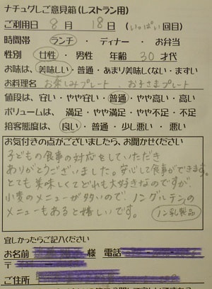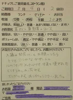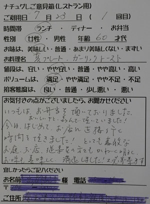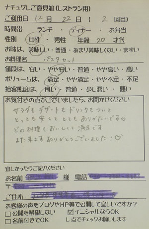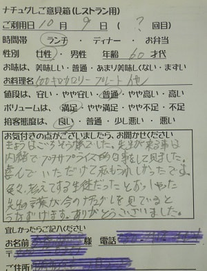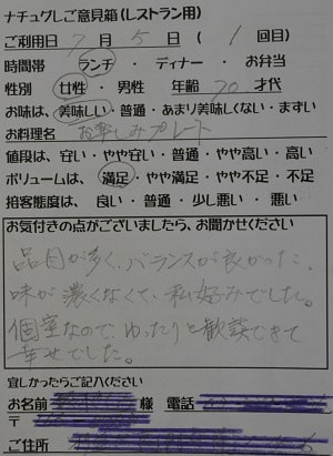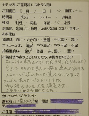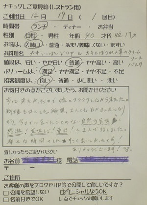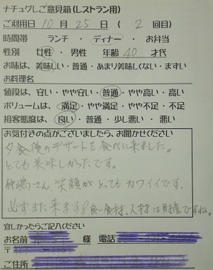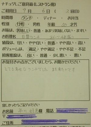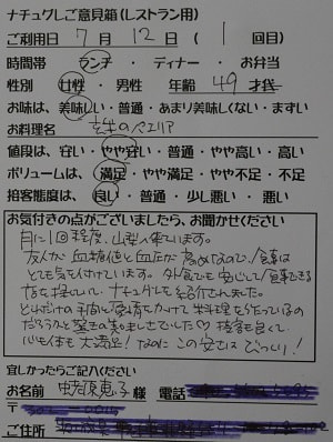 千葉県船橋市の小幡加代子様【山梨県甲府市グルメレストランナチュラルグレースのランチ&ディナー】