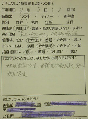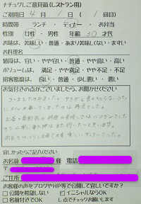 東京都日野市のR様【山梨県甲府市グルメレストランナチュラルグレースのランチ&ディナー】