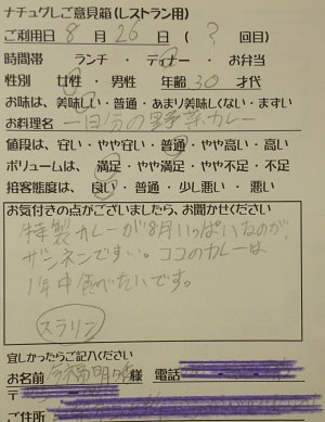 ザンネンです…。ココのカレーは