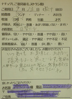 ありがとうございました。安心して食事ができます。