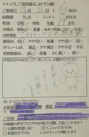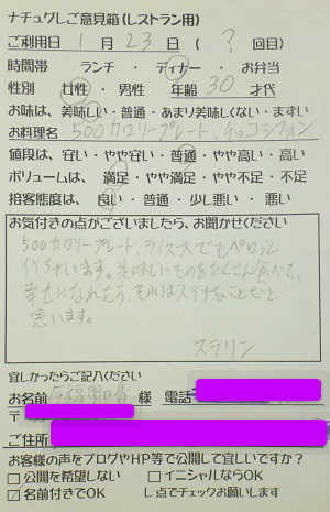 茨城県取手市の蛯原恵子様【山梨県甲府市グルメレストランナチュラルグレースのランチ&ディナー】