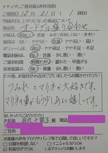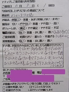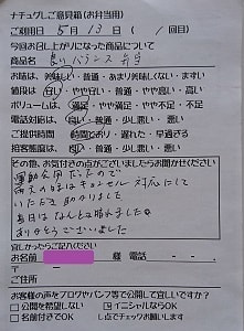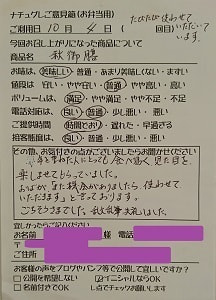 少しの注文でしたが、気持ち良くうけていただき
