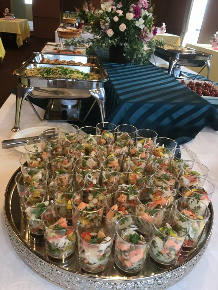 ケータリングのいいところは温かいものは温かく、冷たいものは冷たく美味しい温度で食べられる!ところです。美味しい料理で会話も弾みますね ★(^_-)-☆