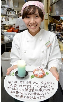 レストランでの送迎会、送られる方にナチュグレからささやかなサプライズプレゼント♪