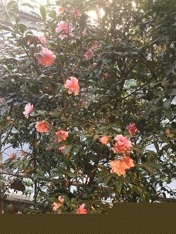 レストラン内の奥の庭には、ツバキの花も満開です!