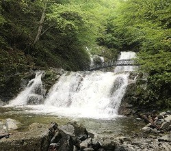 駐車場から西沢渓谷より激しい渓谷沿いを登りながら1時間もかからずに標高差121mの見事な滝に出会えます。