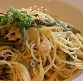 - 旬の国産山菜が入ったチョイ辛パスタ