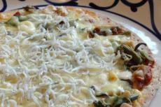 山梨県産全粒粉を使用したカリカリ&サクサクのピザ生地に自家製トマトソース、彩鮮やかな山菜たちとシラスをアクセントに!