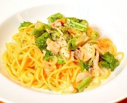 菜の花とドライトマトのペペロンチーノパスタです。