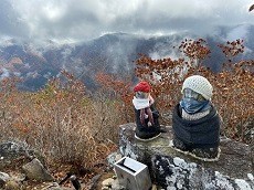 最後の急の登山道を越えると山頂でお地蔵が迎えてくれた!