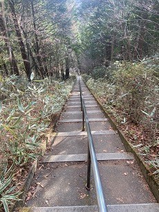 このルートは結構岩場や急登、急落が多く怖いつり橋もあったりして結構スリリングなコースである。