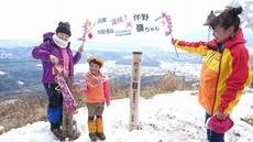 皆で山頂で写真を撮っていると雪を頂いた南アルプスが見えてきた!