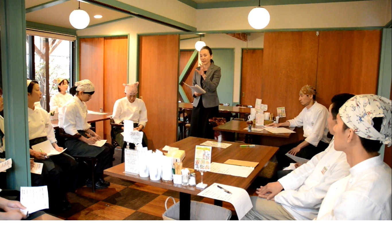本日、営業前にホールスタッフの接客マナーセミナーを開きました!